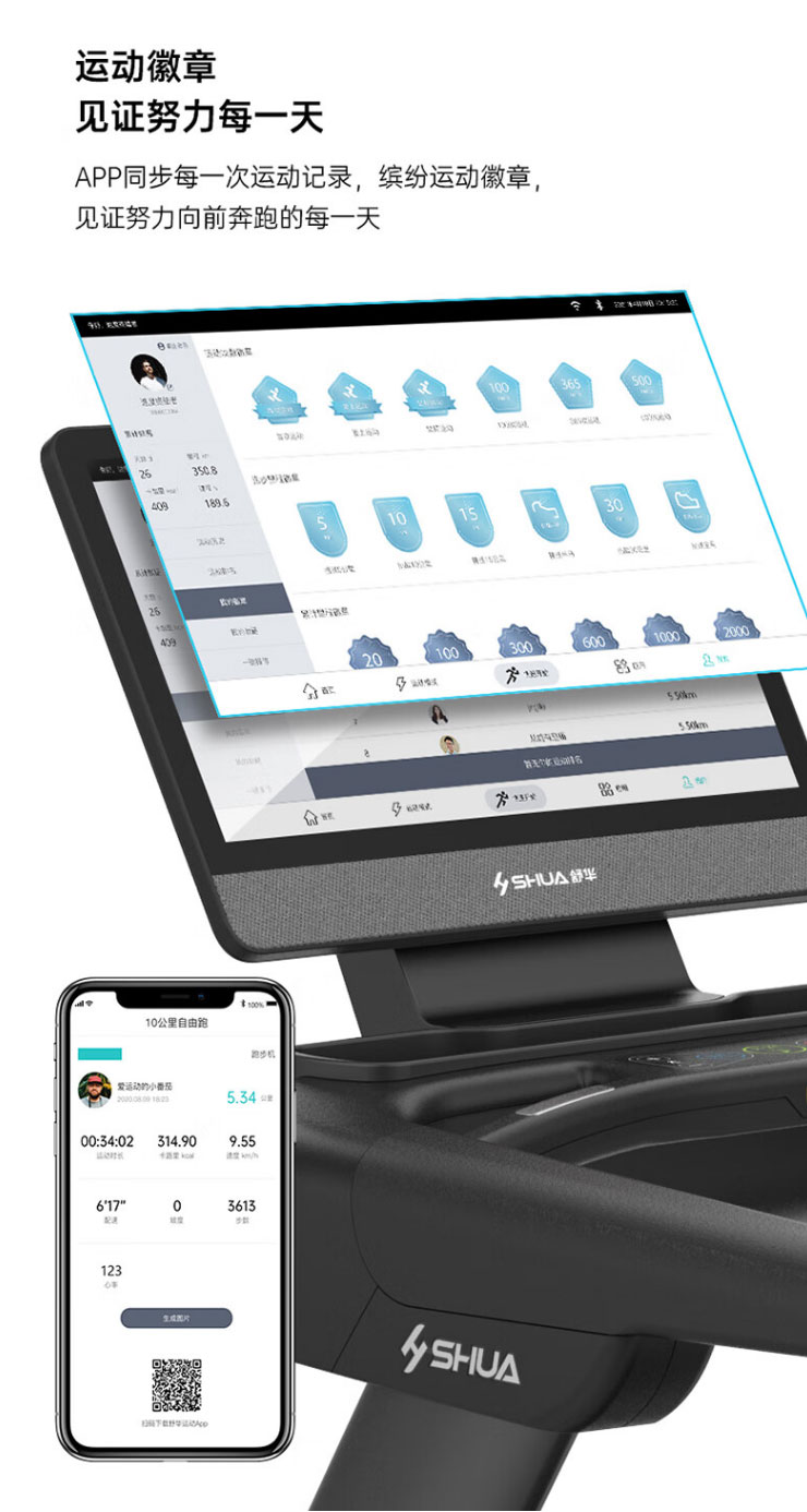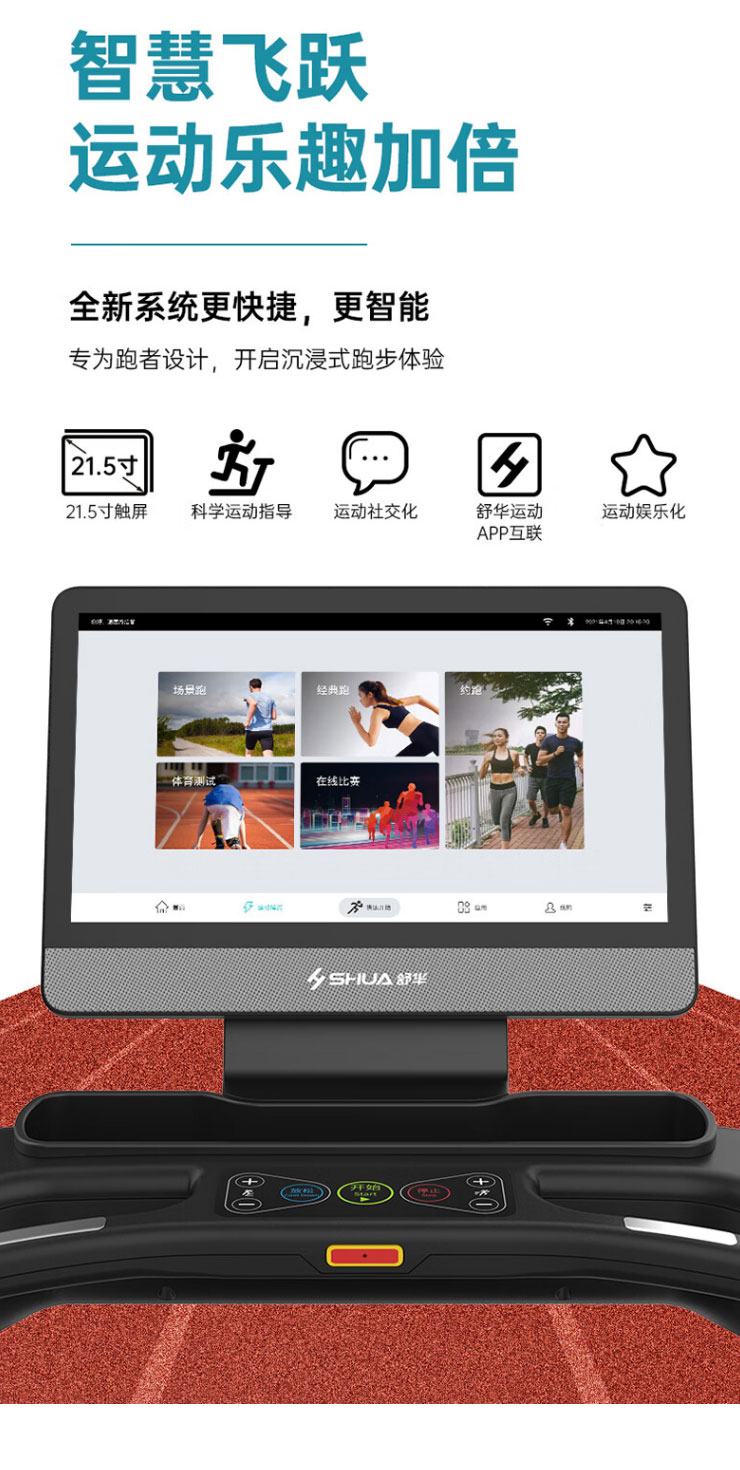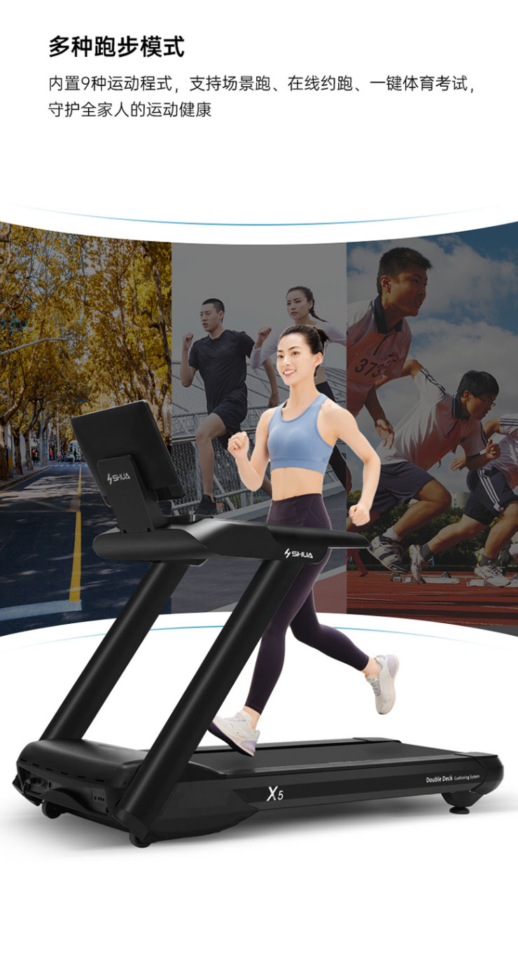 内置程序:搭载好博跑步机系统3.0 :4种程式(5km 往返、间歇、登山、燃脂)+体育考试+倒计模式:时间/距离/ 卡路里+在线约跑+地图跑+好博运动+应用软件