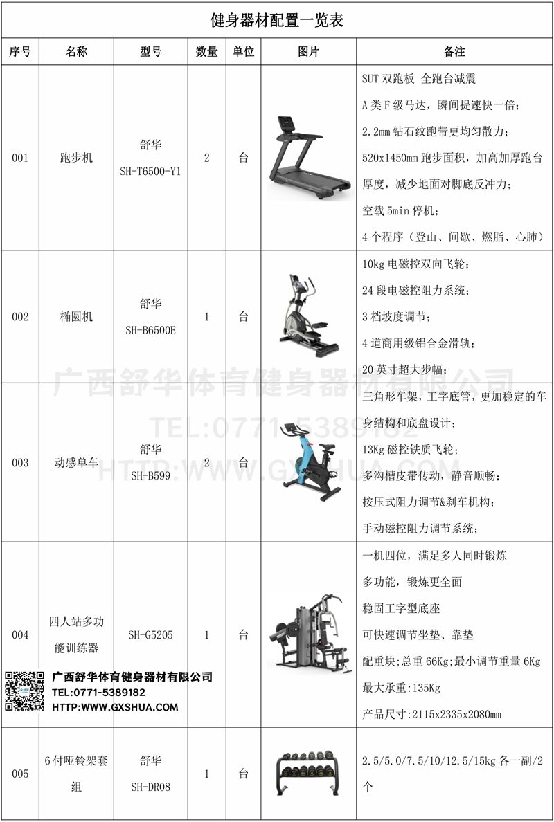 1.好博X5高端跑步机SH-T6500*2台-跑步机可以进行慢跑、快走等有氧运动,提高心肺功能。