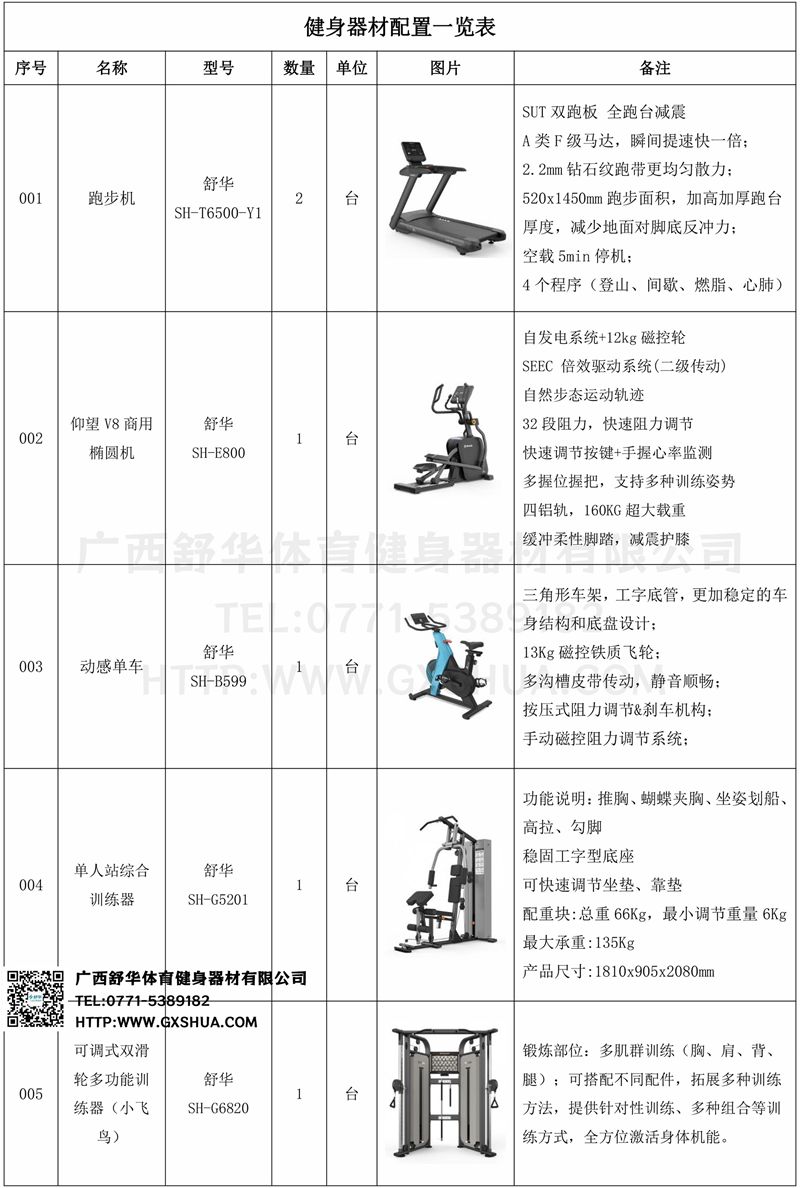 1.好博X5高端跑步机SH-T6500*2台-跑步机可以进行慢跑、快走等有氧运动,提高心肺功能。