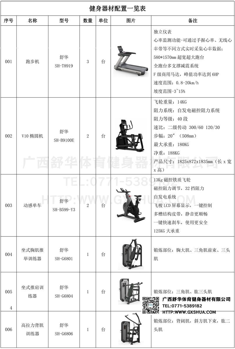 1.好博V9高端跑步机SH-T8919*3台-580*1570mm超宽超大跑台-跑感舒适,跑台整体安全稳定;全跑台多支撑减震平台,保证跑台超强支撑力,达到180kg支撑,满足专业健身房需求。F级商用马达-超强马达,AC 3.0HP 交流,峰值功率达到6HP,F级商用品质。速度范围达到0.8-20km/h;V9跑步机可实现跑台扬升功能,坡度范围-3~15%,满足客户不同的锻炼需求。