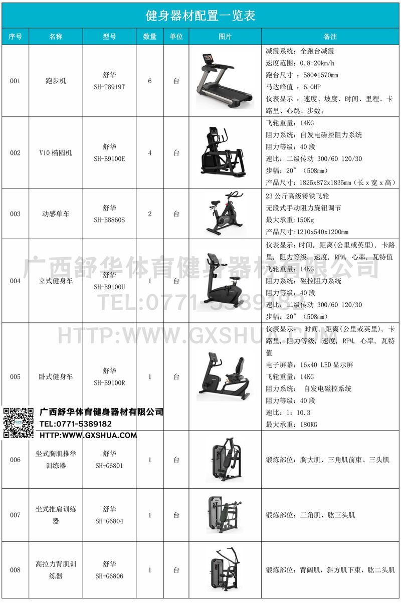 1.好博V9跑步机SH-T8919T*6台-V9+采用全跑台减震设计,为跑者提供舒适的落脚地感和稳定的跑步支撑,良好的缓冲防护,降低膝关节受伤风险。商用大跑台,为跑者提供从容奔跑空间,180kg承载力,580*1570纯跑台面积,满足专业健身需求。V9+采用F级商用马达,6HP峰值马力,20km/h最高速度,提供源源不断的动力。V9+内置健身直播软件,每周提供直播课程,内含大量专业线上健身点播课程,可为健身房不同人群提供多样化健身课程服务。