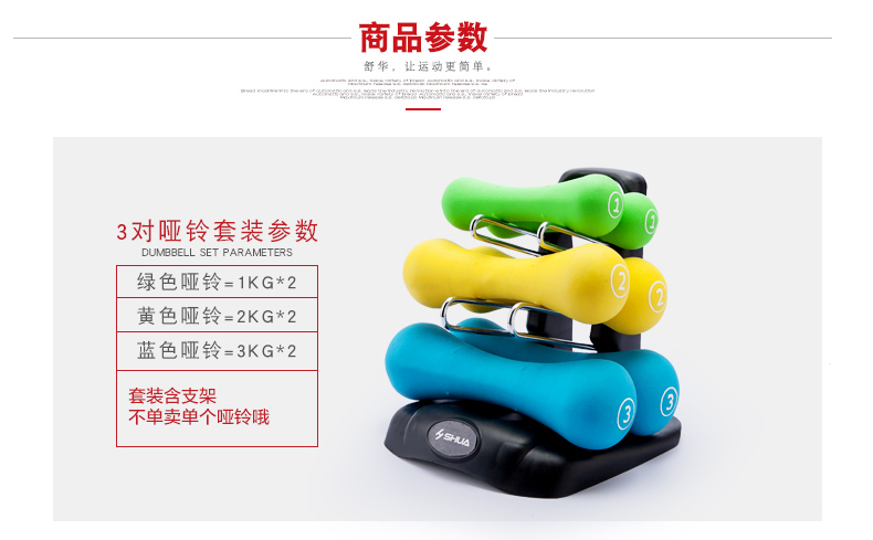 好博SHUA浸塑哑铃套装 家用男士女士健身时尚环保健身运动器材