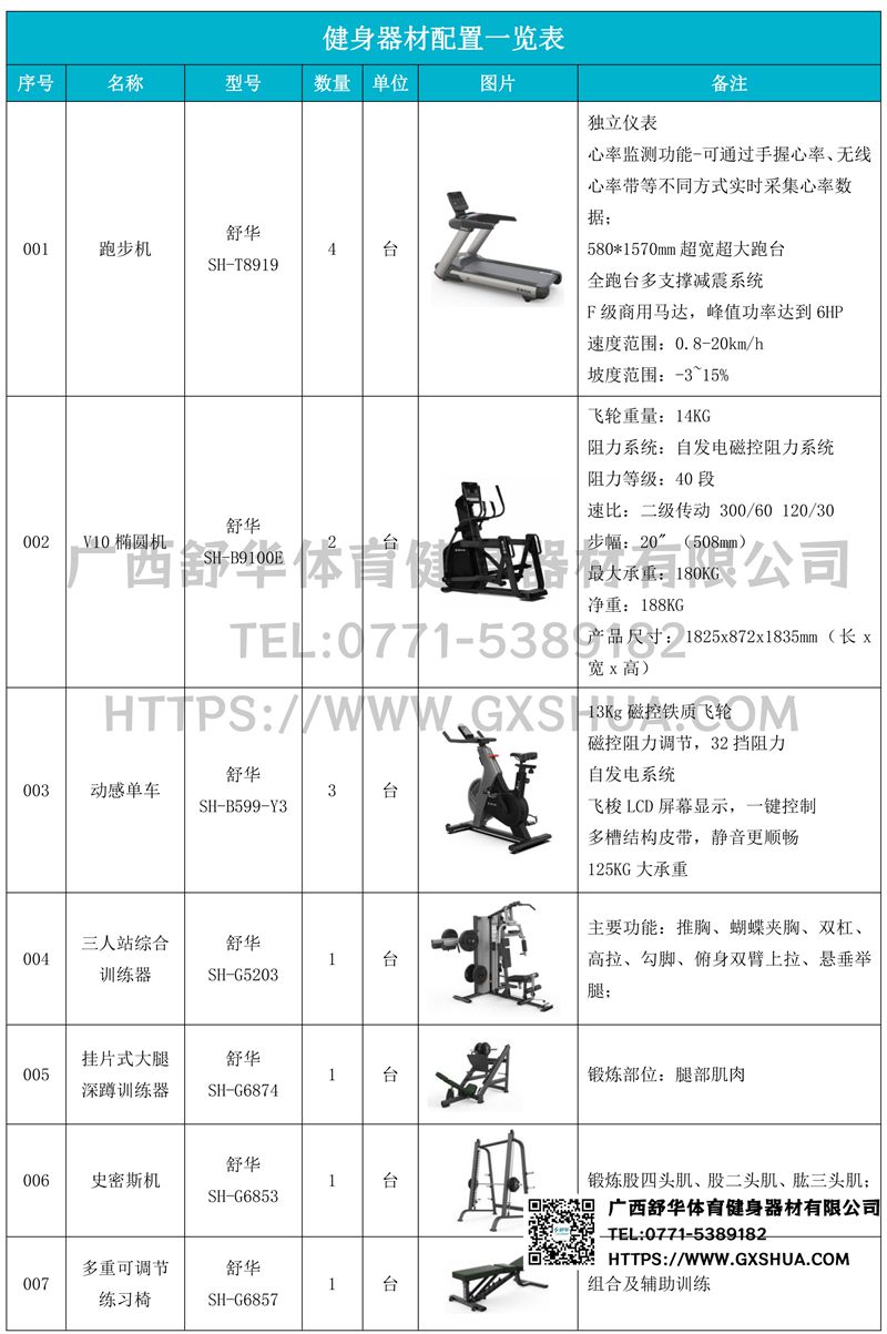 1.好博V9跑步机SH-T8919*4台-独立仪表-简洁大气,全新外观设计,健康运动新选择;心率监测功能,可通过手握心率、无线心率带等不同方式实时采集心率数据;580*1570mm超宽超大跑台-跑感舒适,跑台整体安全稳定;全跑台多支撑减震平台,保证跑台超强支撑力,达到180kg支撑,满足专业健身房需求。