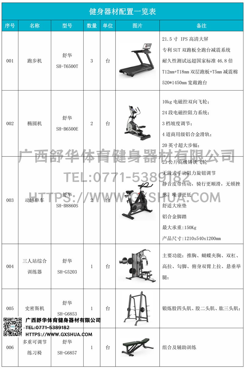 1.好博X5 Pro跑步机SH-T6500T*3台-采用高性能电机,提供稳定动力,支持长时间高强度运行,适合长时间有氧训练,跑台宽敞,提供舒适跑步空间,减少运动中的束缚感,适合不同体型用户。配备先进减震系统,有效缓解跑步对关节的冲击,降低运动损伤风险,内置智能控制系统,支持多种预设程序和个性化训练计划,用户可根据需求调整速度和坡度,满足多样化训练。
